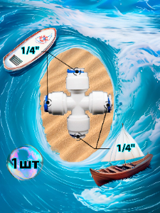 Фитинг крестовина X-образная 1/4"-1/4"-1/4"-1/4" трубки |