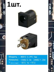 Разъем питания гнездо DC012 5.5 x 2.1 12VDC/2.5A под пайку |