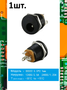 Разъем питания гнездо DC022B 5.5 x 2.5 12VDC/6A под пайку |