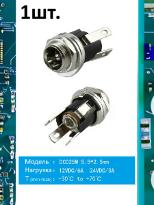 Разъем питания гнездо DC025M 5.5 x 2.5 12VDC/6A под пайку |