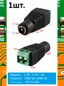 Разъем питания гнездо DC 5.5 x 2.1 12VDC/8A под винты |