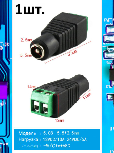Разъем питания гнездо DC 5.5 x 2.5 12VDC/10A под винты |